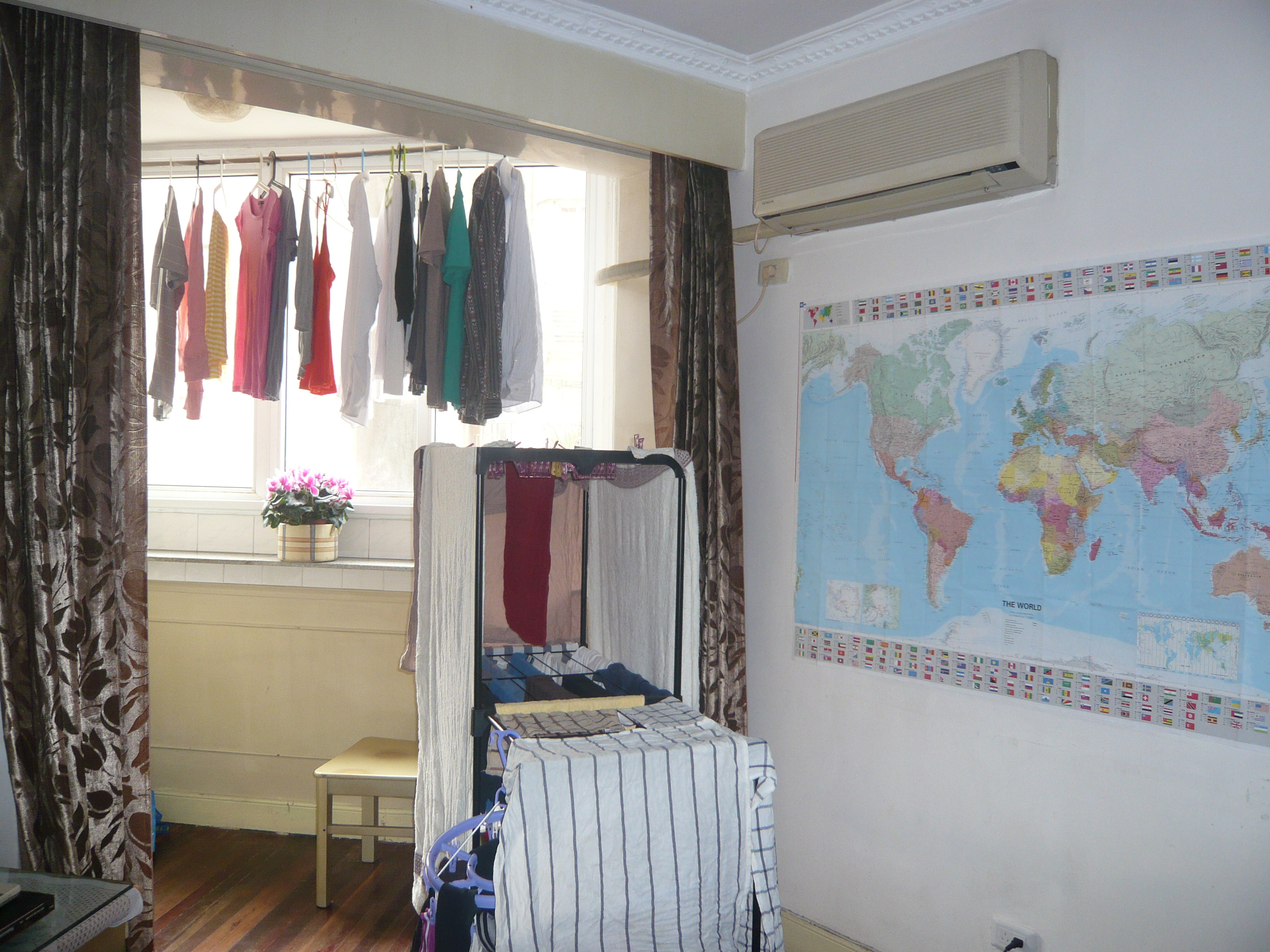 Our apartment and new drying system.  There are no clothes dryers here.china 2 084china 2 087